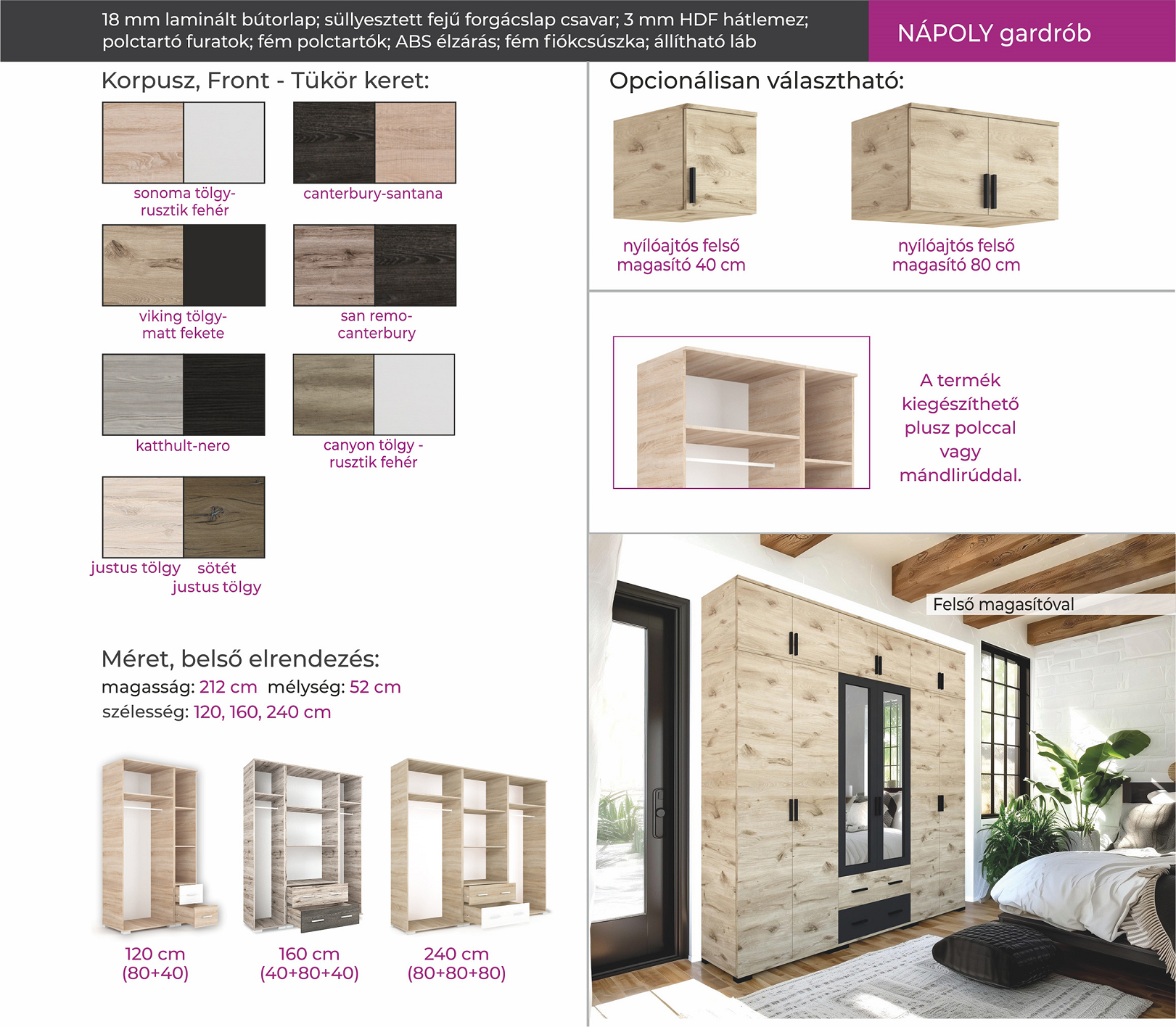 NÁPOLY GARDRÓB, TÖBBFÉLE MÉRET ÉS SZÍN.