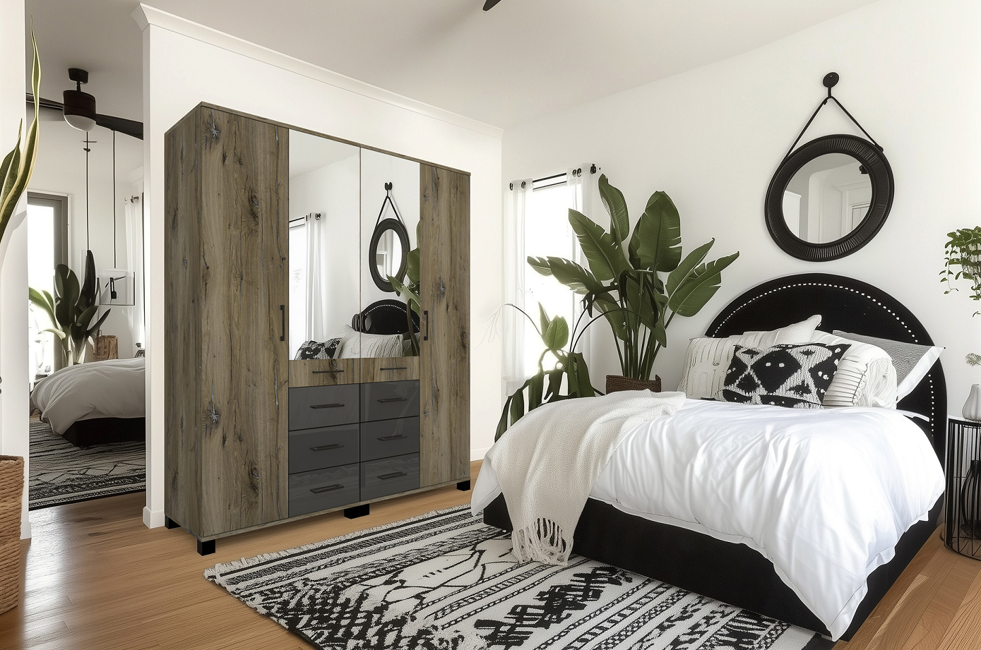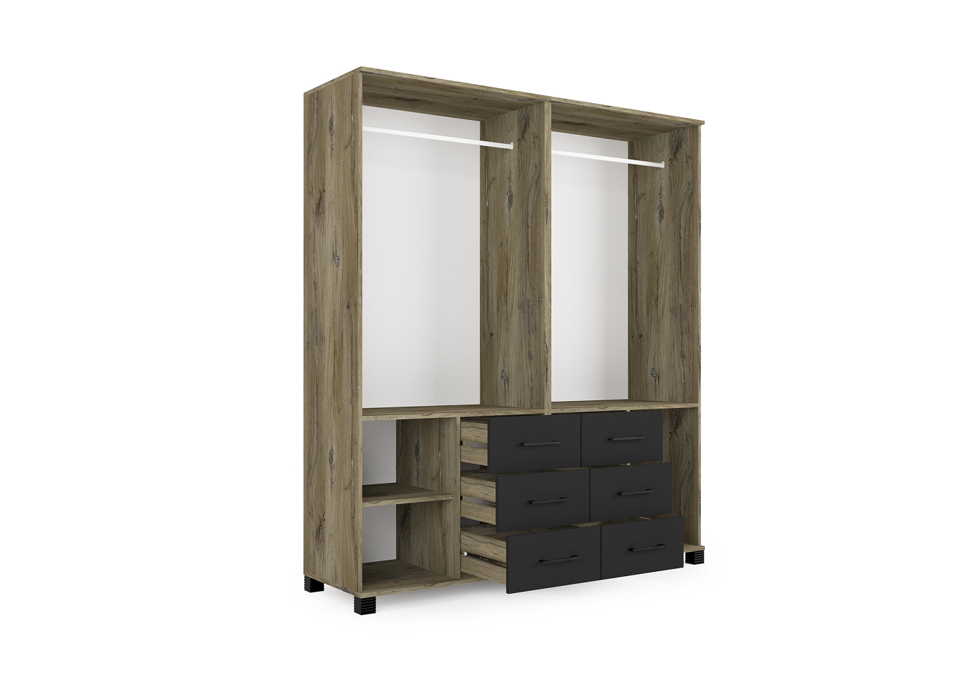 A Nepal gardrób 3 féle korpusz-ajtó színben kérhető. Ehhez szabadon választható 4 féle magasfényű fiókelő szín, így saját ízlésünknek megfelelően állíthatjuk össze gardróbunkat. Belső elrendezését tekintve mándlirudas, polcos-fiókos részekből áll, így kiválóan pakolható, legyen szó a 135 cm-es vagy 180 cm-es méretről.